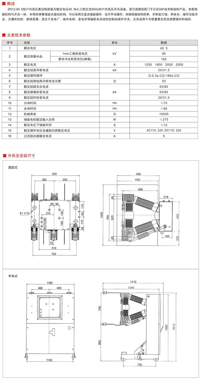 ZN12-40.5戶內(nèi)高壓真空斷路器