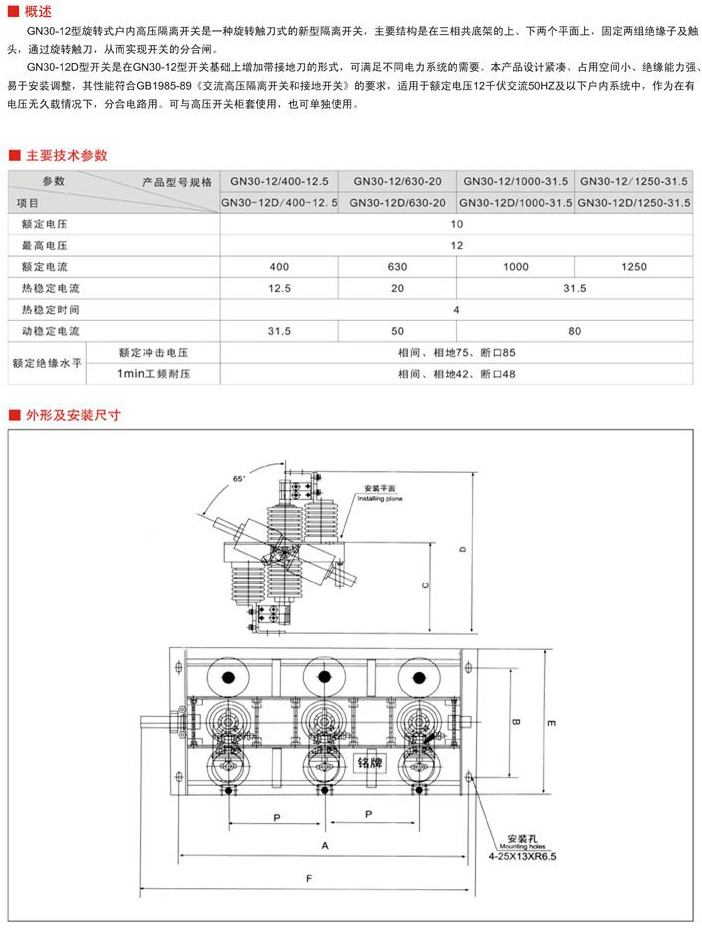 GN30-12系列戶內(nèi)旋轉(zhuǎn)式高壓隔離開關(guān)