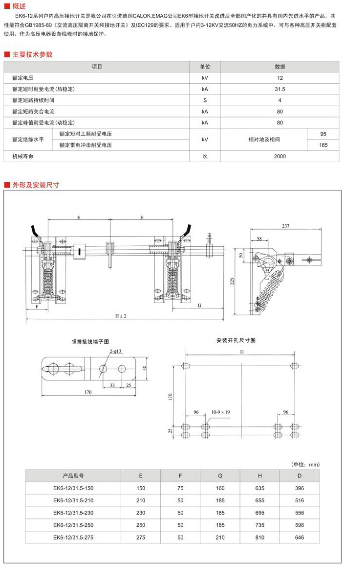 EK6-12系列戶內高壓接地開關